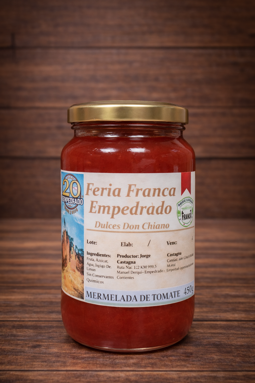 Disfrutá el auténtico sabor de lo natural con nuestra mermelada de tomate Don Chiano, elaborada de forma artesanal con ingredientes seleccionados y siguiendo recetas tradicionales. Cada frasco es preparado con dedicación, cuidando cada etapa del proceso para conservar el sabor casero y la calidad de los ingredientes.